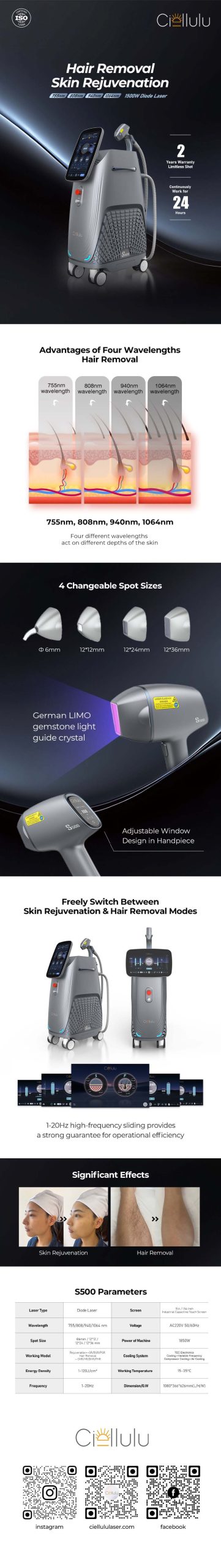 755nm, 808nm, 940nm, and 1064nm are four different wavelengths at which diode laser hair removal acts on different depths of skin